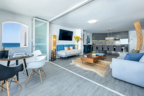 4 BR duplex offers spacious accommodations with sea views.