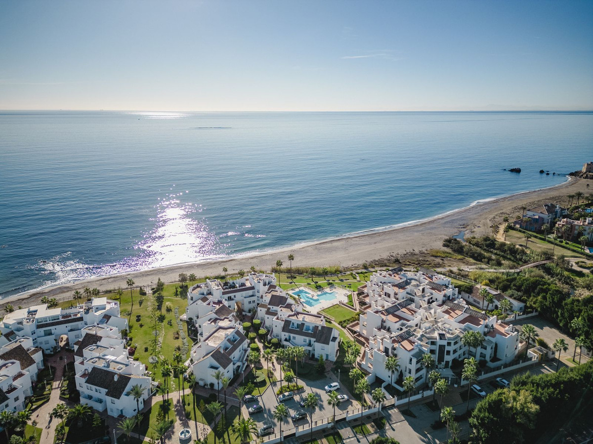 Come and see this wonderful Penthouse with an exceptional location, easily accessible and a few minutes from Estepona, golf courses and with direct access to the beach. The white and modern Mediterranean-style urbanization has large green areas and a swimming pool over the sea. Our Penthouse is on the second floor, but don't worry because it has several elevators from the garage. We enter the hall and to the right is the independent kitchen, connected to the dining area for greater comfort; Straight ahead you find the light-flooded living-dining room with access to the wonderful terrace with barbecue. The large terrace is distributed around the entire apartment so that you can access it from both the living room and the bedroom and you can easily create several well-differentiated areas… barbecue area and outdoor dining area, sunbathing area and one more area where you already have a wonderful jacuzzi installed. You also have the staircase to go up to the large solarium with pergola, with incredible views and so much space that you can let your imagination run wild and create a unique space for your enjoyment.
