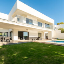 Truly stunning four bedroom villa with simply stunning panoramic views over a large private garden to the sea towards Gibraltar and North Africa. This spacious villa benefits from a large private infinity pool or 35m2, set within a very private garden totalling 740m2 of completely flat usable area! The property is rented during peak periods and as such is meticulously maintained, furnished and decorated the present owners.