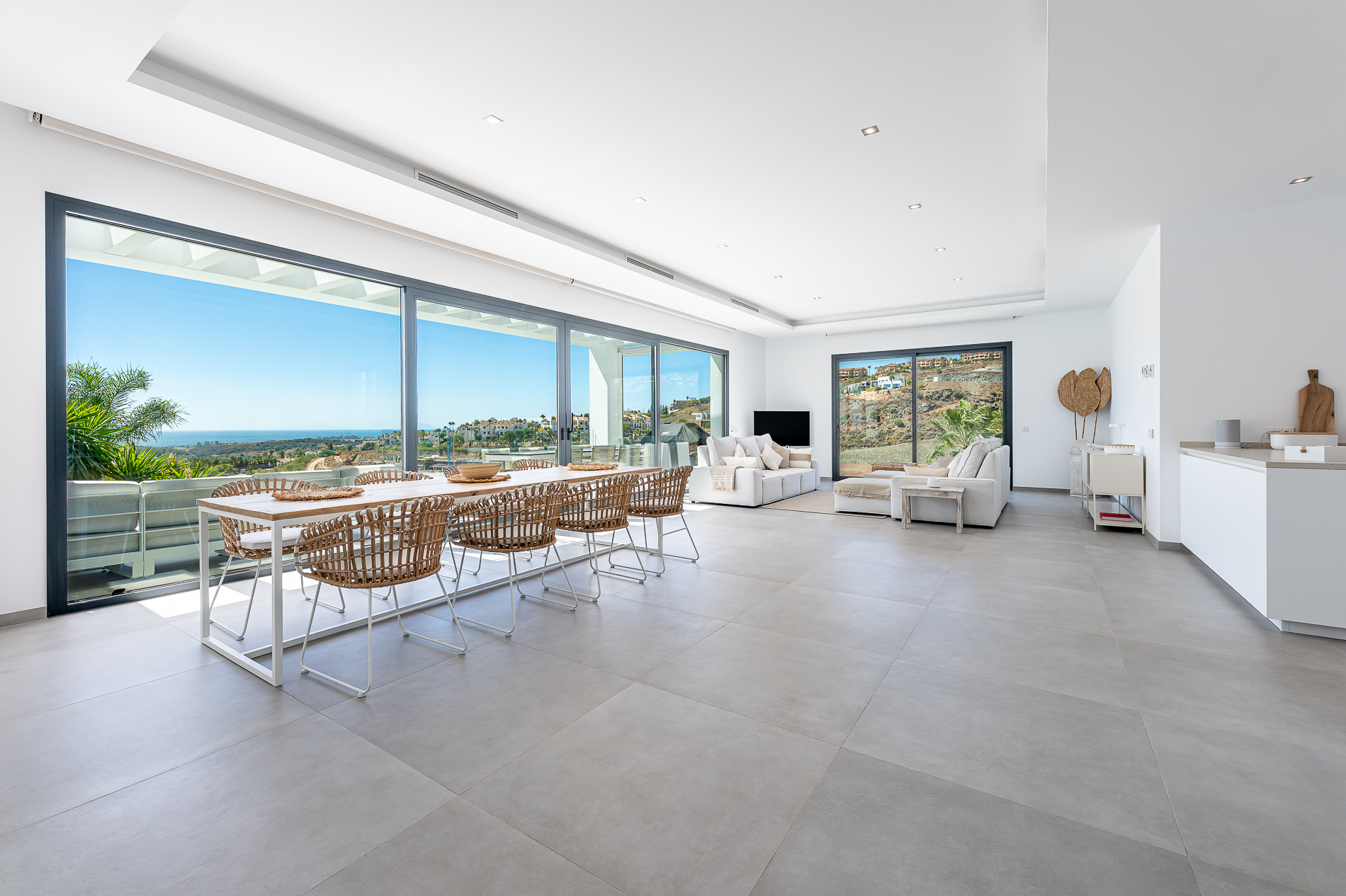 Floor-to-ceiling windows open the home to the vast expanse of the Mediterranean, with views of Gibraltar and the African coast. Soak in your own private heated pool or lounge in the lavish, cool interior. Every room is bathed in natural light, offering beautiful sea views and sunsets – this is the perfect space for both relaxation and celebration.