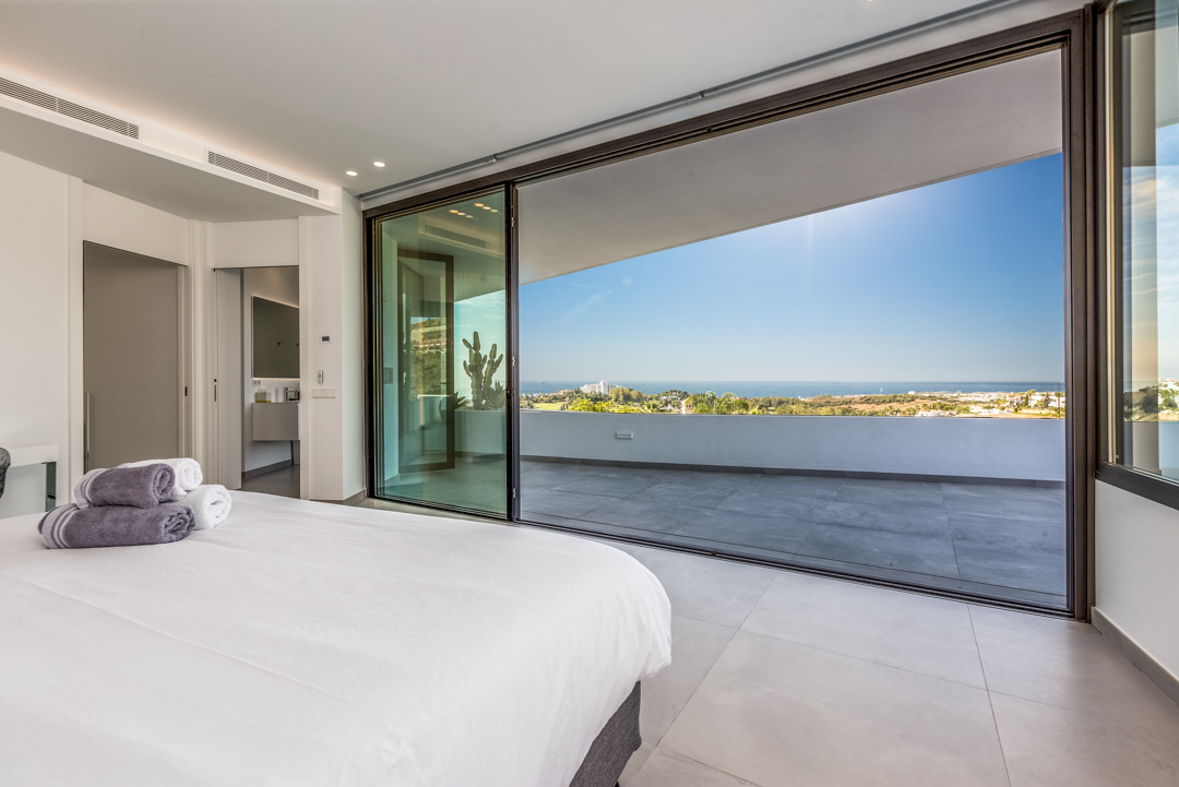 Glass plays an integral role in the design. You’ll find that every bedroom in the home features views of the Mediterranean, with Gibraltar and the coast of Africa off in the distance. Slide open the windows to seamlessly blend the interior with the beautiful outdoors.