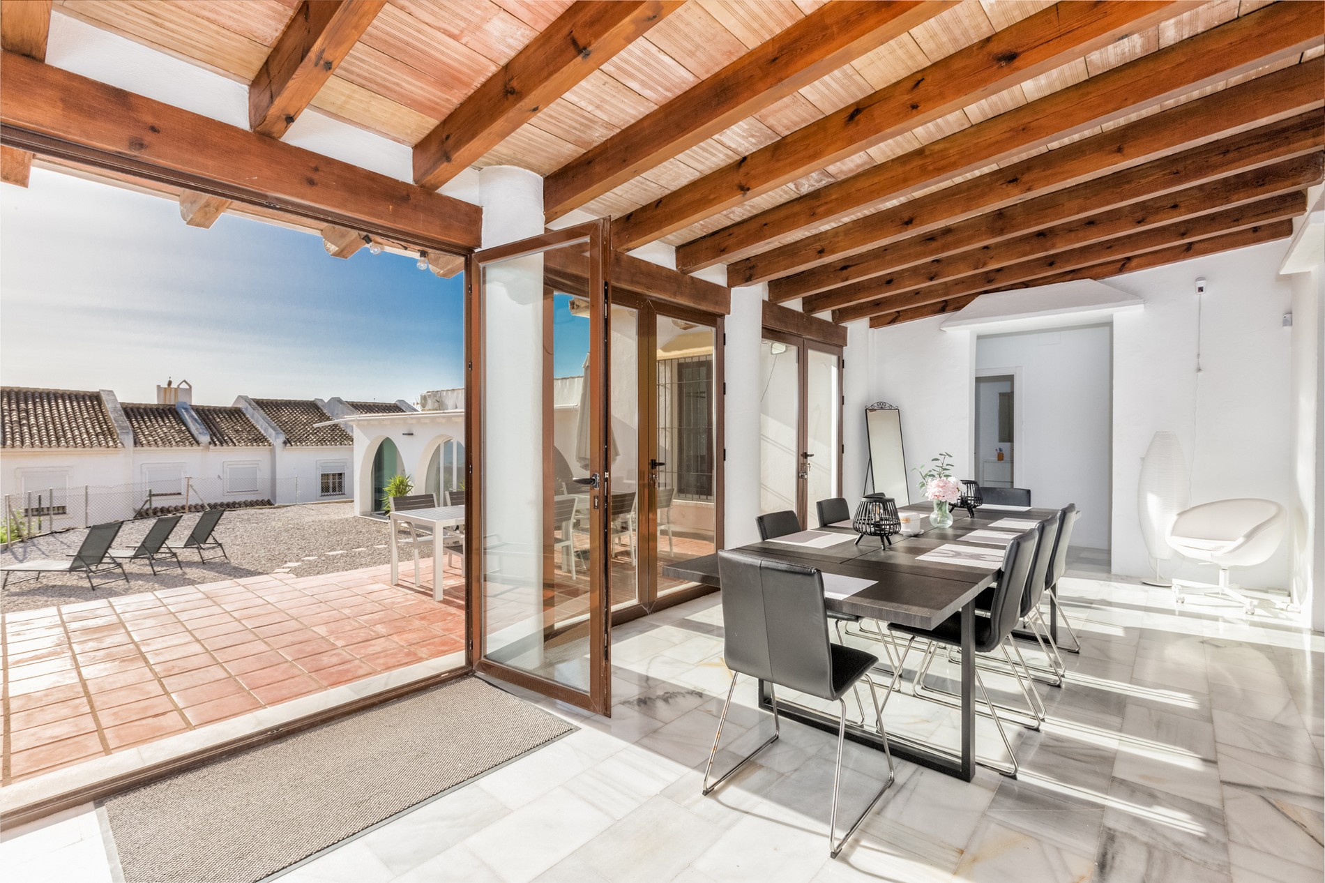 You have exclusive access to the entire home and private garden. The pool and Padel areas are communal.
